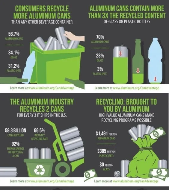 SUSTAINABLE! —> ALUMINIUM CANS ARE INFINITELY RECYCLABLE